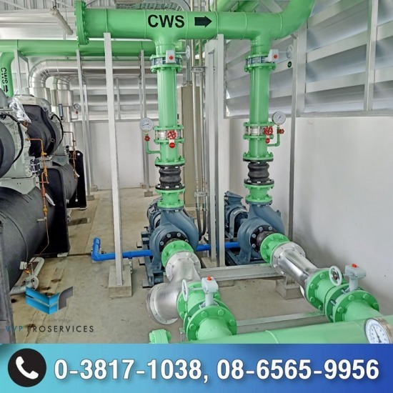 • รับเหมาติดตั้งระบบทำความเย็นชิลเลอร์พร้อมเดินท่อระบบน้ำเย็นชิลเลอร์ Chiller piping system design